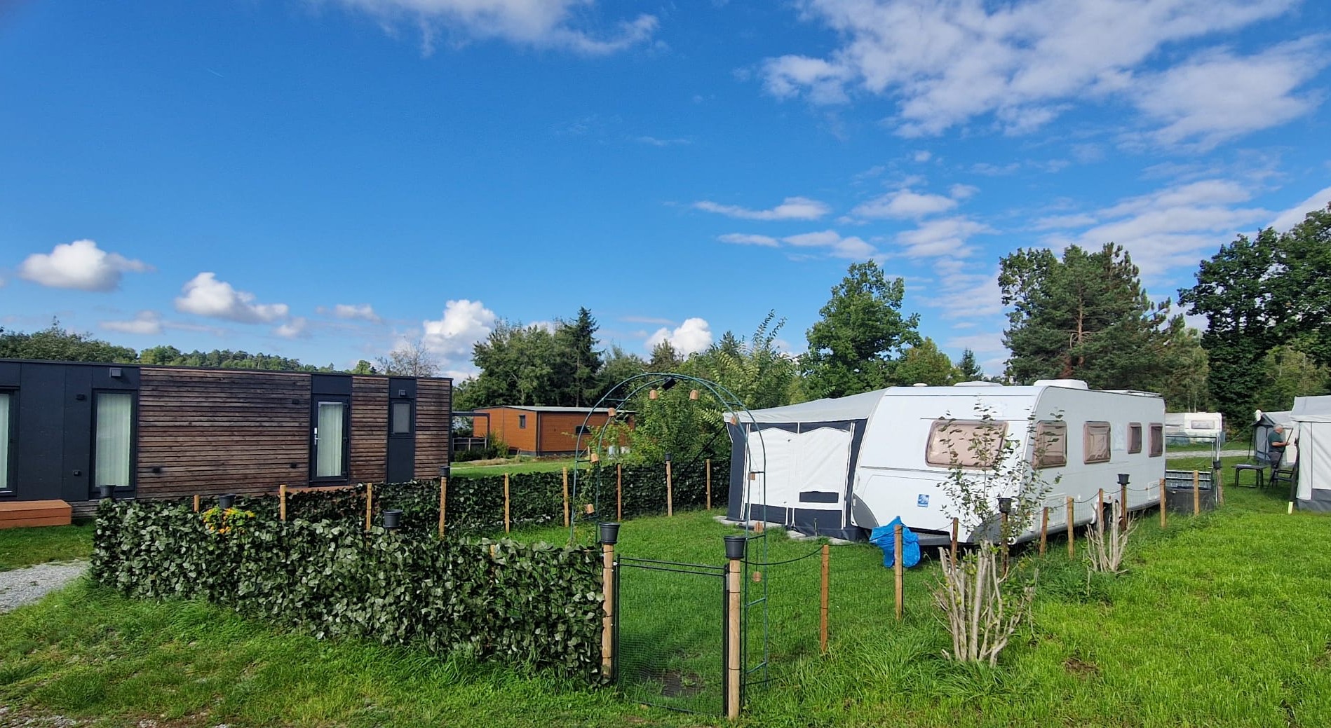 Ein sehr schön gelegener Stellplatz wird samt Wohnwagen und großem neuen Winterzelt abgegeben. Es ist auch möglich, nur den Wohnwagen oder nur den Stellplatz zu erwerben.